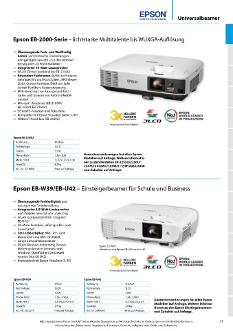 Epson EB-2000-Serie – lichtstarke Multitalente bis WUXGA-Au ösung